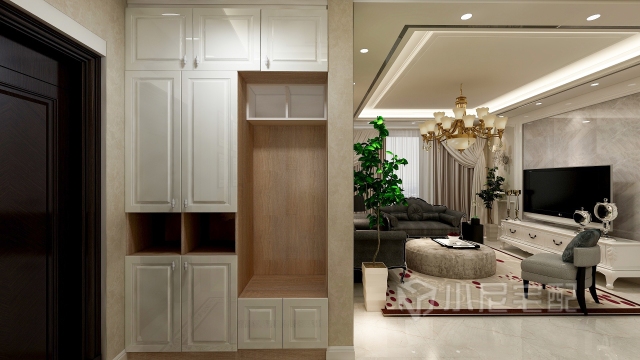 門廳鞋帽柜采用套色設(shè)計(jì),白色門板提亮室內(nèi)空間