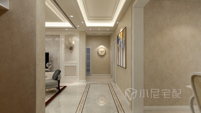 門廳過道位置地面拼花造型與頂部呼應(yīng)
