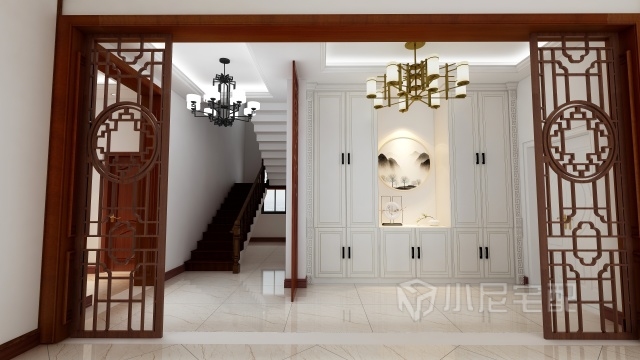 玄關(guān)處的鞋柜既增加了裝飾效果,又體現(xiàn)出了實用功能
