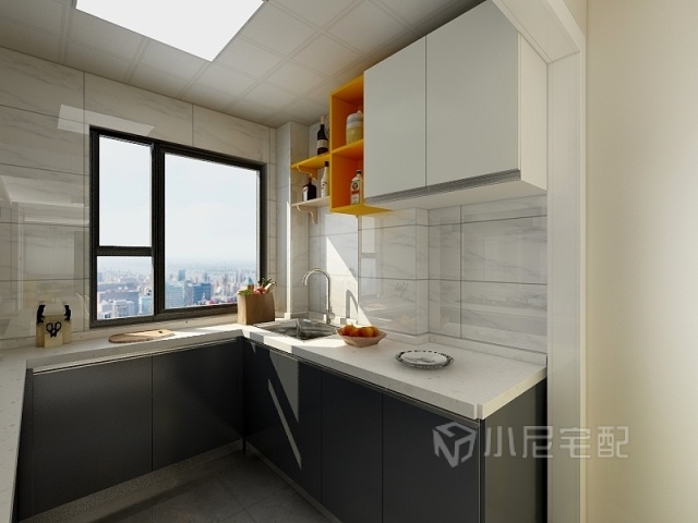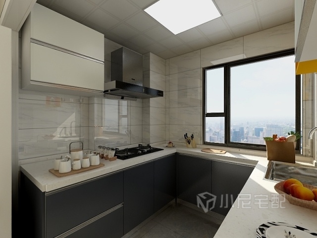 廚房墻面采用白色理石紋的瓷磚,給人整體感覺干凈大方。
