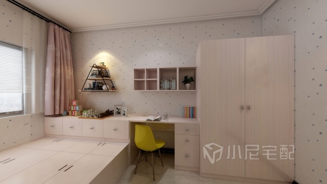 兒童房是一個(gè)榻榻米的設(shè)計(jì) 收藏空間較多 不管是書寫學(xué)習(xí)還是玩??伤闶嵌喙δ艿姆块g