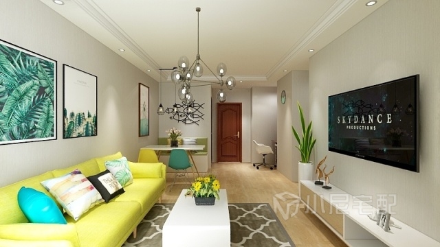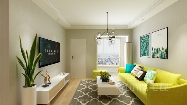 臥室整體灰色相呼應(yīng)亮黃色點(diǎn)綴