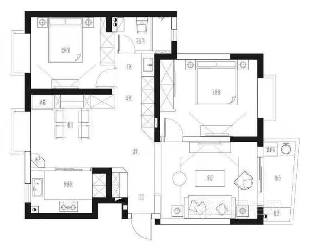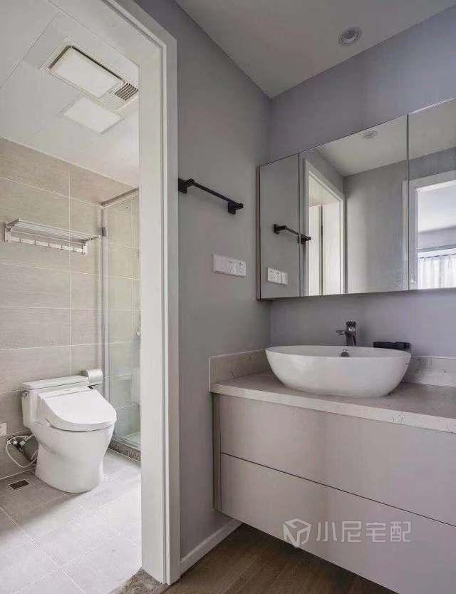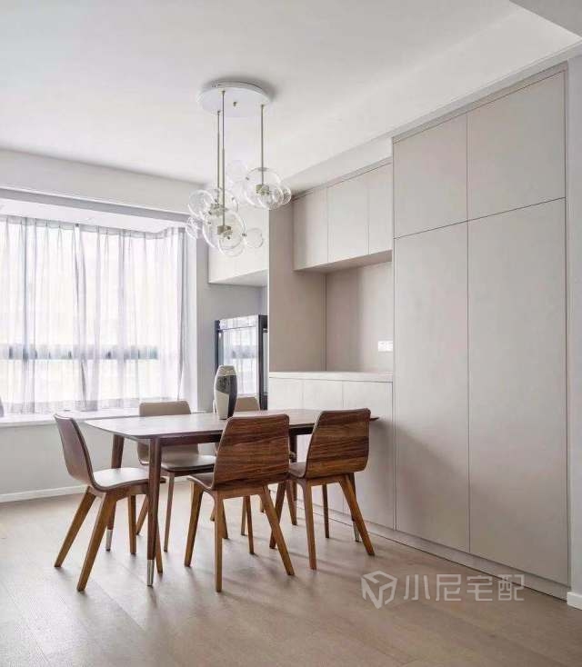 整個(gè)空間在色系上選擇灰藍(lán)色與白色作為背景色,棕與會(huì)為主體,藍(lán)黃作為輔助,適當(dāng)?shù)慕鹕约狱c(diǎn)綴,定格為簡約北歐風(fēng)
