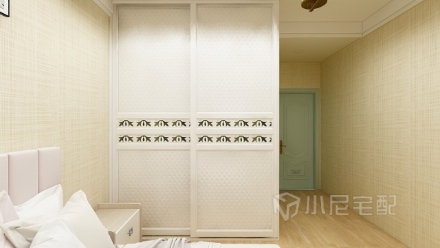 軟包皮革的白色衣柜,搭配皮藝雙人床,讓您在休息室更加舒適溫暖。