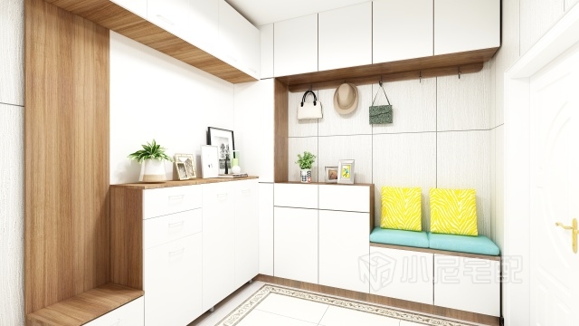 利用L型大玄關(guān)的造型有效的利用了入戶花園中的大面積空間。