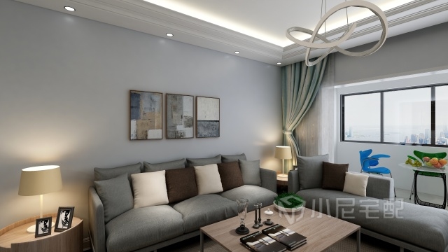 簡約的布藝沙發(fā),以灰色調(diào)為主,盡顯沉著穩(wěn)重。