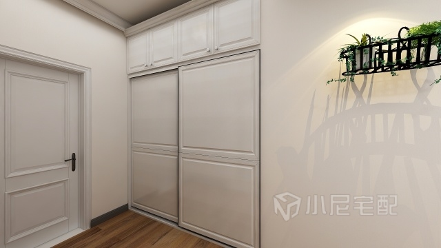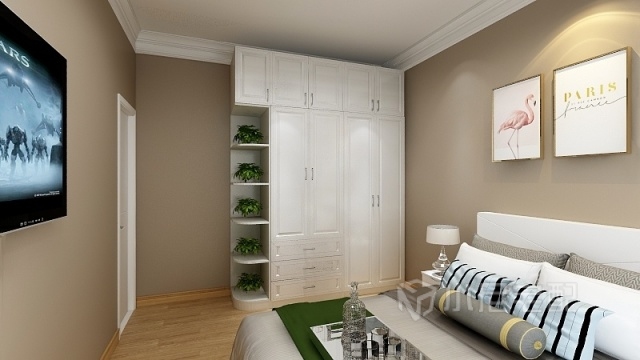 小平米的次臥配上封頂?shù)某ㄩ_衣柜真的小空間大大利用,整體顏色搭配也檔次格調(diào)3提升了