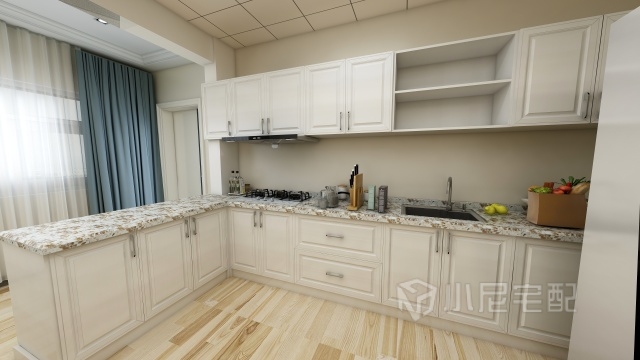 L型廚房操作起來方便格調(diào)也不是美觀,在廚房操作給客人感覺你是大廚的感覺