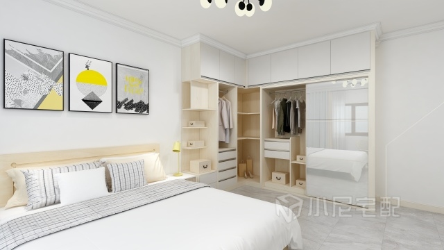 次臥室空間較大,放置轉(zhuǎn)角衣柜配合原木色床,使空間顯得緊湊而又不擁擠