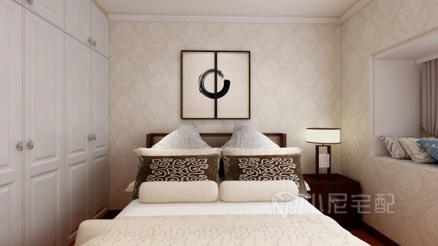 這是次臥盡量還是讓他在使用紅木色的基礎上亮一些。