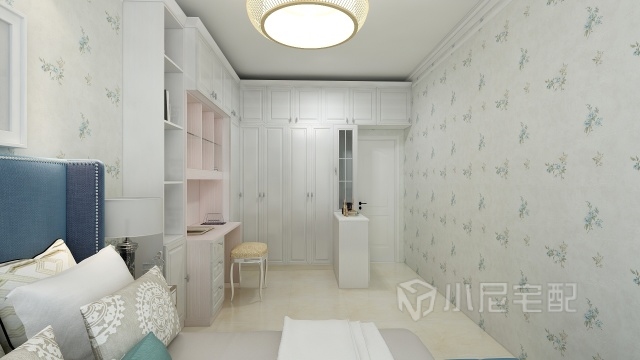 大臥室結(jié)合書房,門口設(shè)計小柜,顯得別出心裁。空間不單調(diào)。
