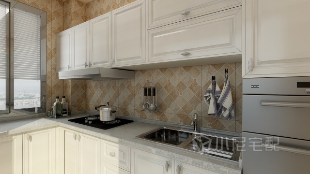 廚房為L型廚房,配白色門板干凈整潔。