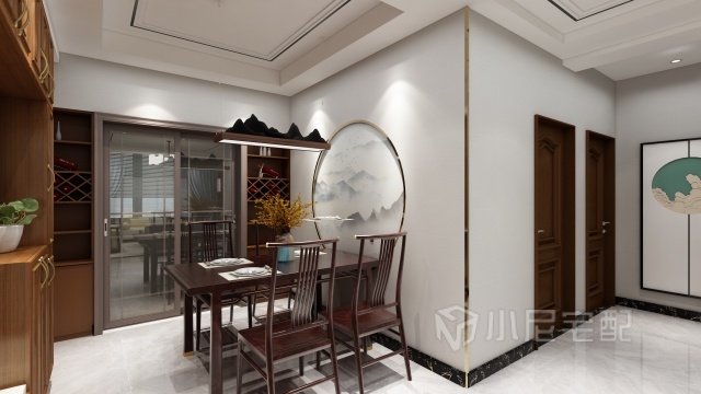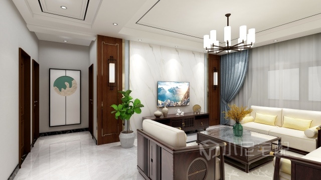 濃郁的高雅感營造出精致的空間,明暗色調(diào)和諧共處,其中點綴的少許亮色是點睛之筆。環(huán)顧四周之時,軟裝的搭配相得益彰,電視背景墻大理石的輝煌感更使整個空間大放異彩,是吸睛之處。