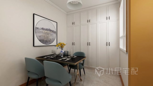 精致的餐桌椅和美食,在簡潔的吊燈映襯下,點亮一家人美好的餐桌時光