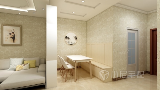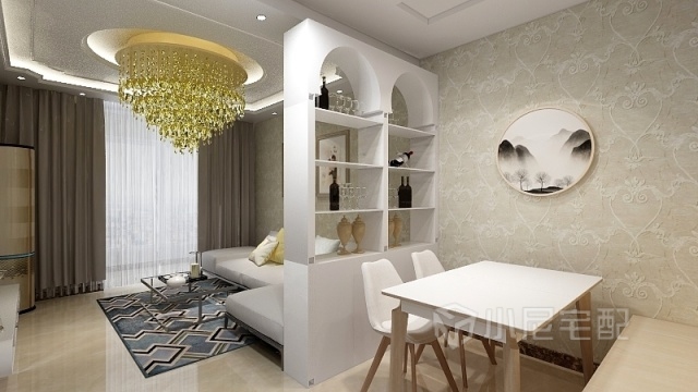 南向的兩居,客餐廳是很大的問題,中間有酒柜做隔斷是空間得到最大利用格局分明,簡約大氣
