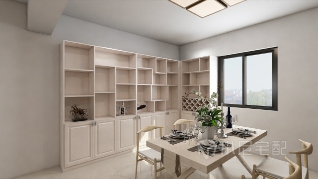 開放式的酒柜加多寶閣的設(shè)計。