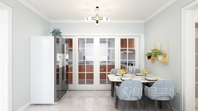 餐廳原廚房墻拆除,做通透移門,既增加采光又實用