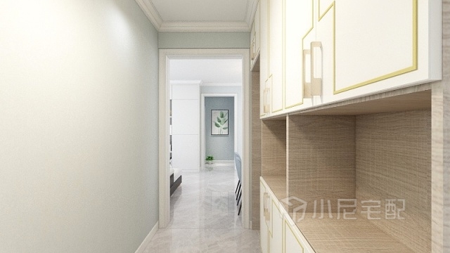 進(jìn)戶門處做轉(zhuǎn)角輕奢鞋柜,顯得簡單而不單調(diào),增加儲物空間