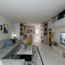 簡(jiǎn)潔又清新的家居氛圍是人們一直以來(lái)所崇尚的,簡(jiǎn)潔的線條與輕淺色調(diào)的拿捏,讓客廳、餐廚區(qū)域從視覺上呈現(xiàn)完全開放的開闊感。