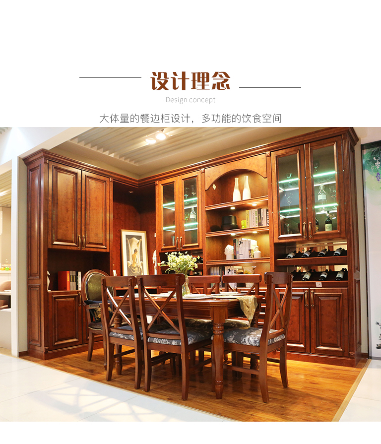 | 細(xì)節(jié)描述 | 餐廳餐邊柜需要大體量多功能。餐邊柜內(nèi)部格局的設(shè)計(jì)合理,敞開式的層板上和玻璃門板可以擺放書、畫冊(cè)、裝飾品以及漂亮的餐具,在柜體的部分空間加裝柜門,里面可以存放餐巾布、食物等比較瑣碎的物品。還有收納功能儲(chǔ)物柜,可以供放置碗碟筷、酒類、飲料類,以及臨時(shí)放湯和菜肴用,也可放置客人包小物件,酒插格放置美酒,每一次吃飯都是享受。 |