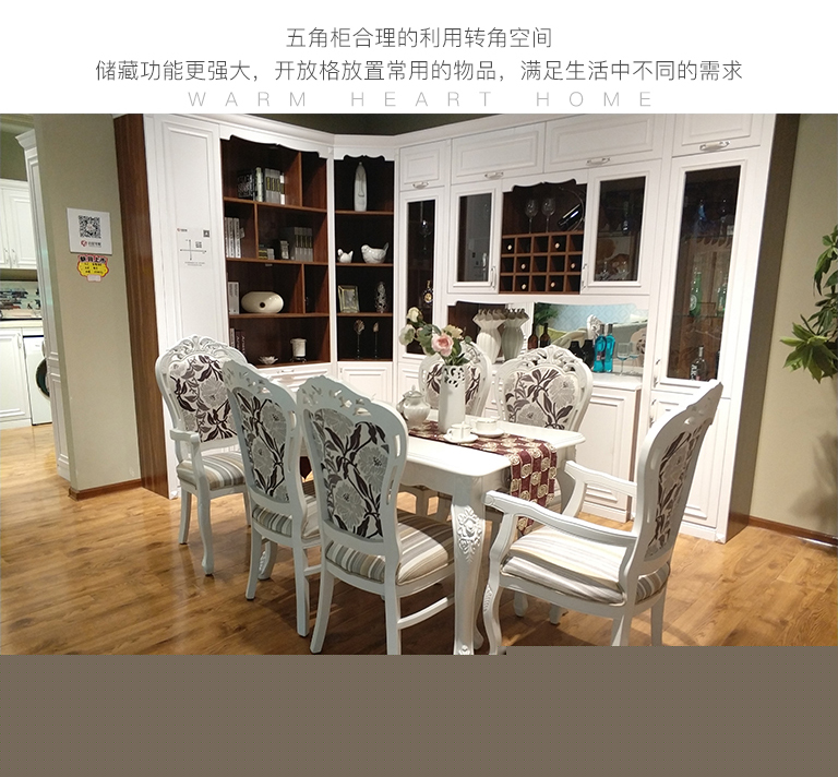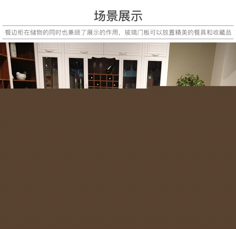 | 細(xì)節(jié)描述 | 餐邊柜在儲物的同時也兼顧了展示的作用,玻璃門板可以放置精美的餐具和收藏品,此外還特意設(shè)計了小型的圓弧臺面,方便在上面進(jìn)行簡單的備餐。五角柜合理的利用轉(zhuǎn)角空間,儲藏功能更強(qiáng)大,開放格可以放置常用的物品,滿足生活中不同的需求。 |
