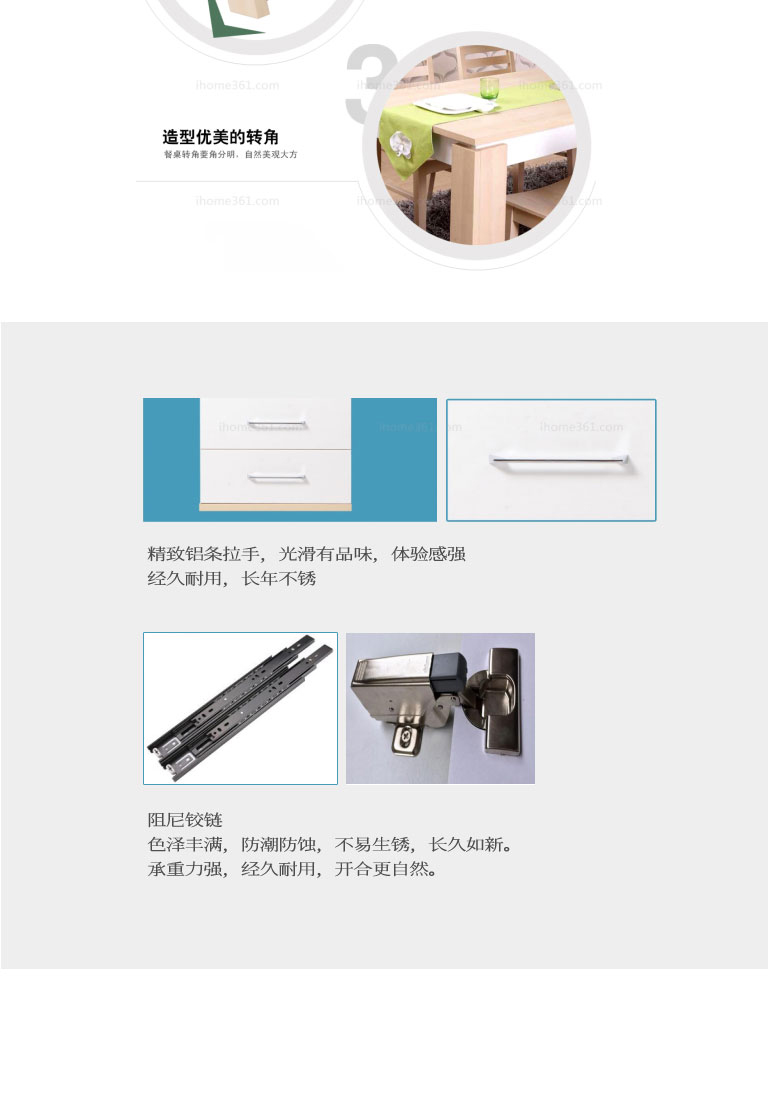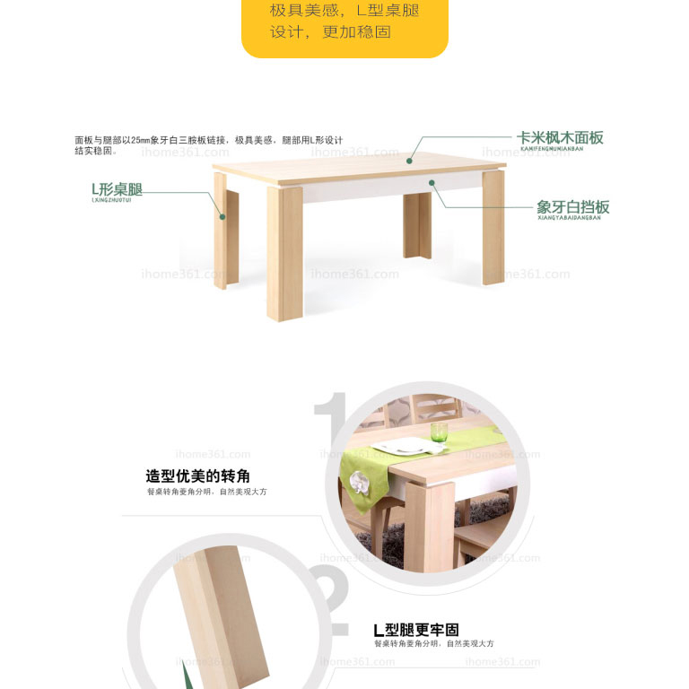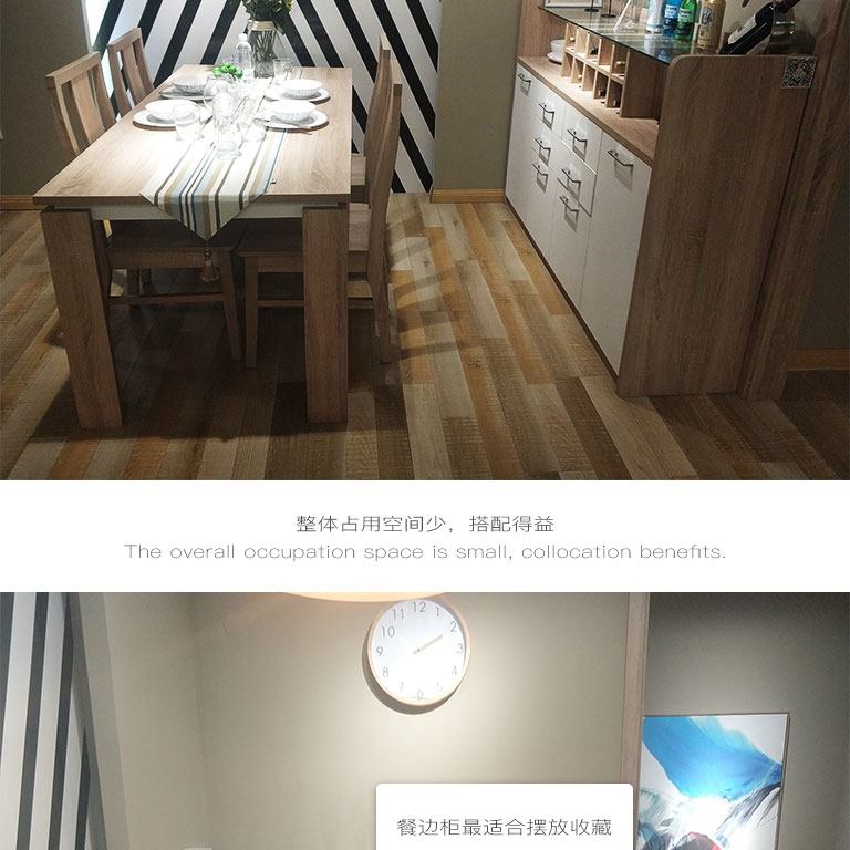 | 規(guī)格 | 餐桌:1600*800*750mm 餐椅:450*450*850mm 餐邊柜:1564*400*1108mm |