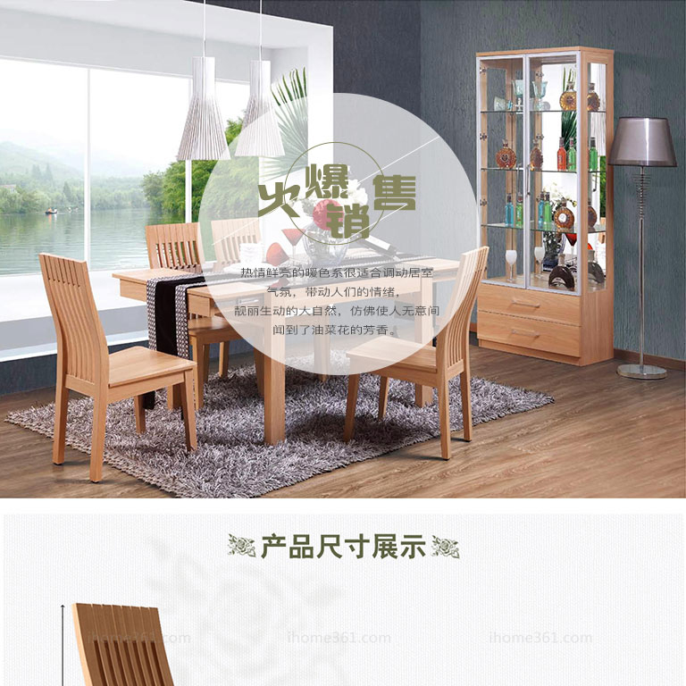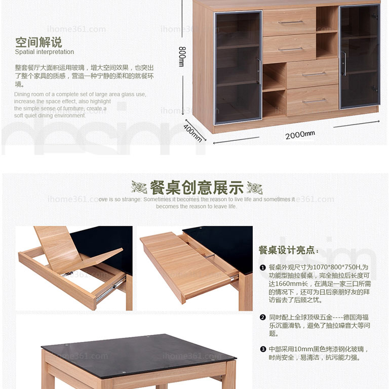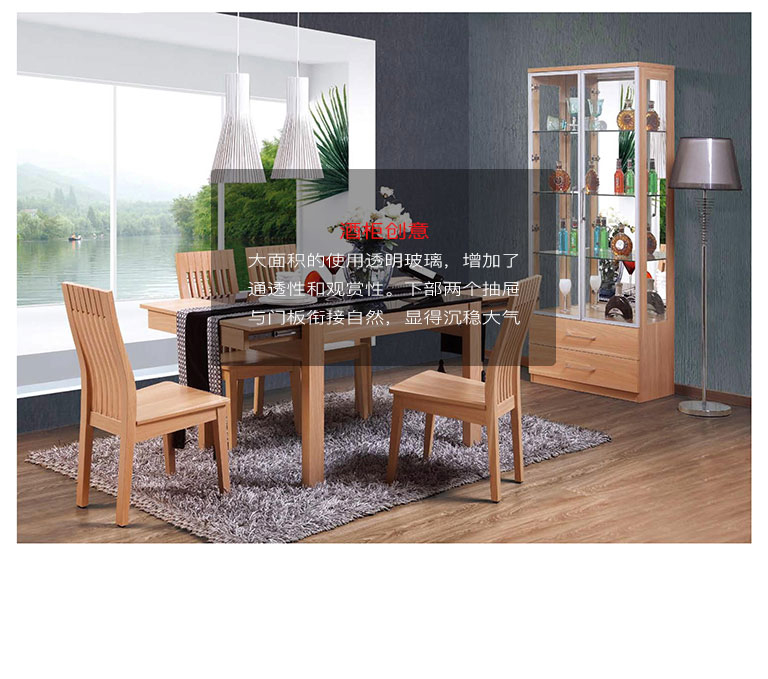| 規(guī)格 | 餐桌:1070(1660)×800×750mm 餐椅:450*450*850mm 酒柜:800×400×2000mm |